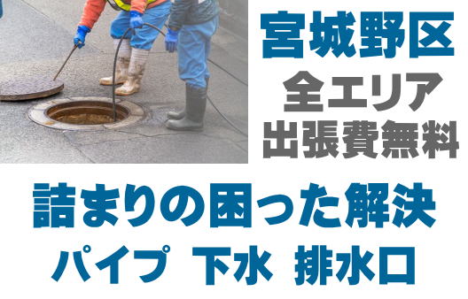 宮城野区の水回りの詰まりを即解決!キッチン、トイレ、風呂、洗面、マンホール、雨どい、シンク、厨房、グリストなどの詰まりトラブル対応。