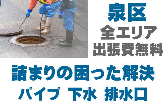 泉区の水回りの詰まりを即解決!キッチン、トイレ、風呂、洗面、マンホール、雨どい、シンク、厨房、グリストなどの詰まりトラブル対応。
