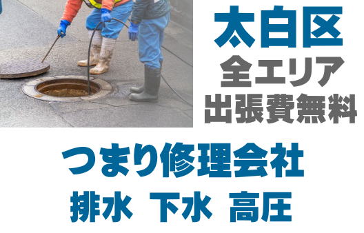 太白区で排水つまり、トイレ詰まり、シンクつまりなどの排水トラブルはお任せください。店舗の厨房、グリストつまりも対応しております。