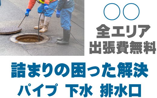 ○○で排水つまり、トイレ詰まり、シンクつまりなどの排水トラブルはお任せください。店舗の厨房、グリストつまりも対応しております。配管つまり、マンホールの溢れ、下水の臭い、排水管のトラブルは最短15分到着!
